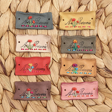 [장식부자재] 폼폼꽃 자수 워싱 천연 가죽라벨 8색 1세트