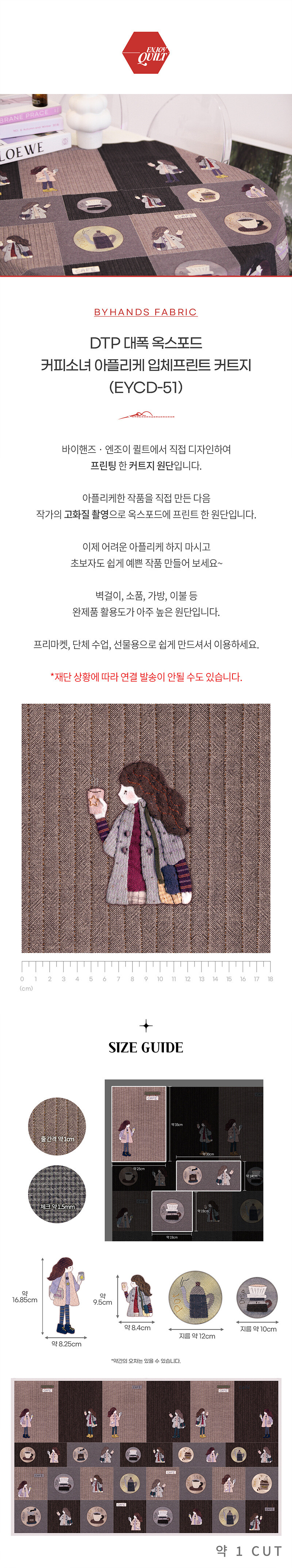 바이핸즈 엔조이퀼트에서 직접 디자인하여 프린팅 한 커트지 원단입니다! 패브릭포스터로 활용도 가능하며 아플리케가 어려운 초보자분들도 예쁘게